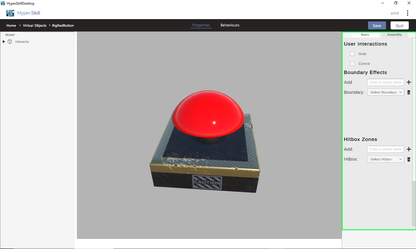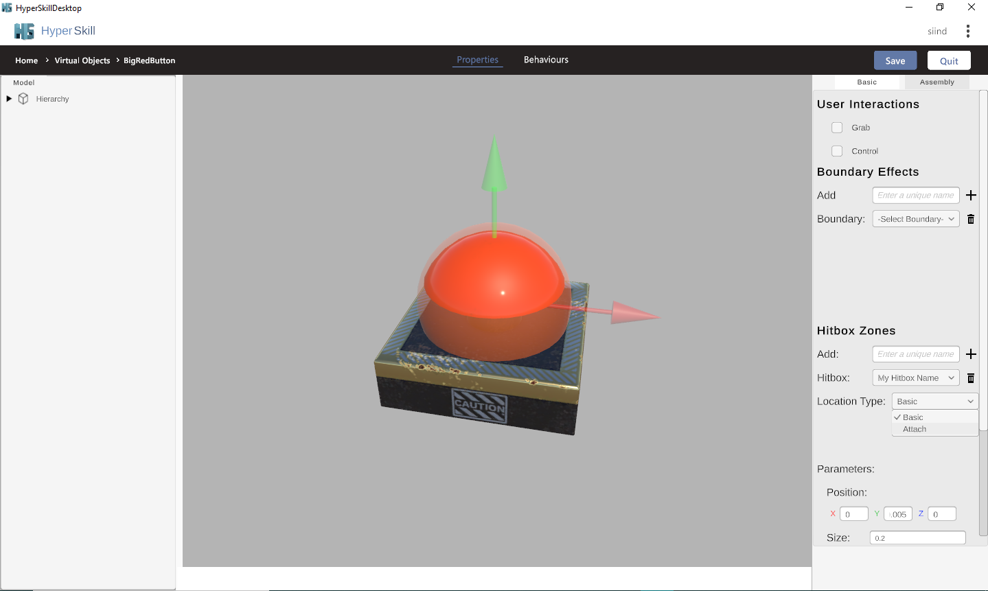 7. &#x20;Use the dropdown to select virtual object hitboxes to edit or delete them.